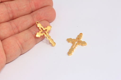 Ciondolo a forma di croce in oro opaco 24k, 20x28 mm, ciondolo religioso a forma di croce, CHK414-1