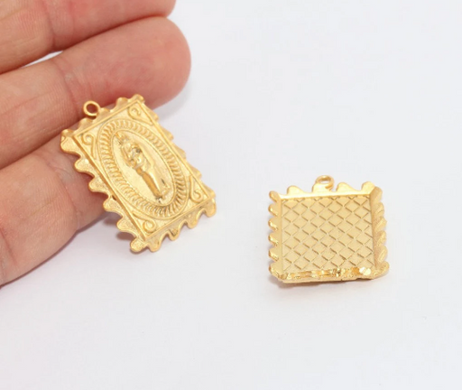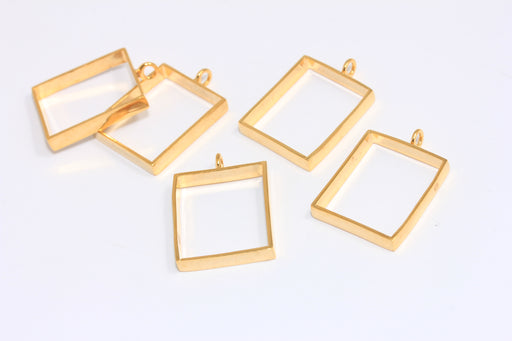 Ciondolo rettangolare placcato oro lucido 24k da 20x28 mm, ciondolo a medaglione con cornice, ciondolo con cornice a castone, MLS752