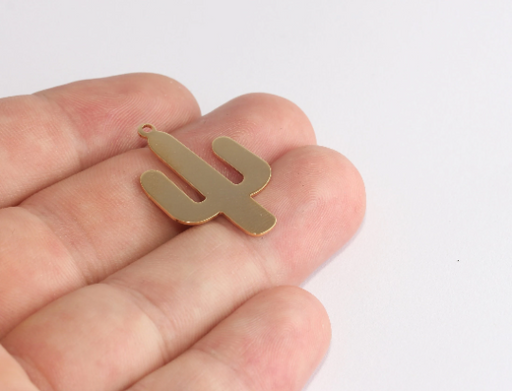 Ciondolo a forma di cactus in oro lucido 24k da 20x31 mm, ciondolo a forma di cactus martellato, ciondolo a forma di cactus del deserto, BRT363