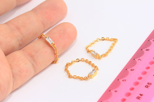 Anelli con catena in oro lucido 24k con pietra baguette, anello con catena micro pavé, MTE389