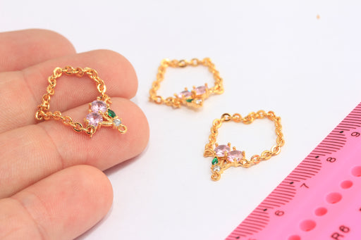 Anelli con catena in oro lucido 24k con ciliegia, anello con catena in micro pavé di ciliegie, MTE396