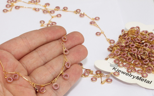 Materiale: ottone Dimensioni: 1x11mm Dimensione della moneta: 6,5 mm Colore: placcato oro lucido 24k Colore dello smalto: rosa Lunghezza: Facoltativa