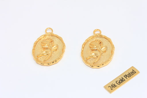 Medaglione in oro lucido 24k 24x28 mm, medaglione a forma di fiore, MTE1483