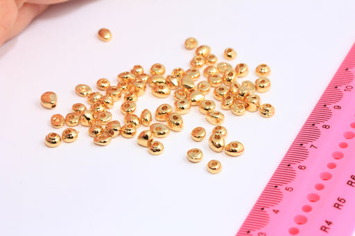 Perline a sfera in oro lucido 24k da 5x6 mm, perline irregolari, braccialetti a sfera rotonda, perline distanziatrici, perline per braccialetti, forma irregolare, ROSE193