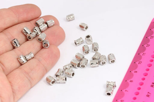 Perline tubolari placcate in rodio 5x6 mm, perline tubolari distanziatrici, MTE574