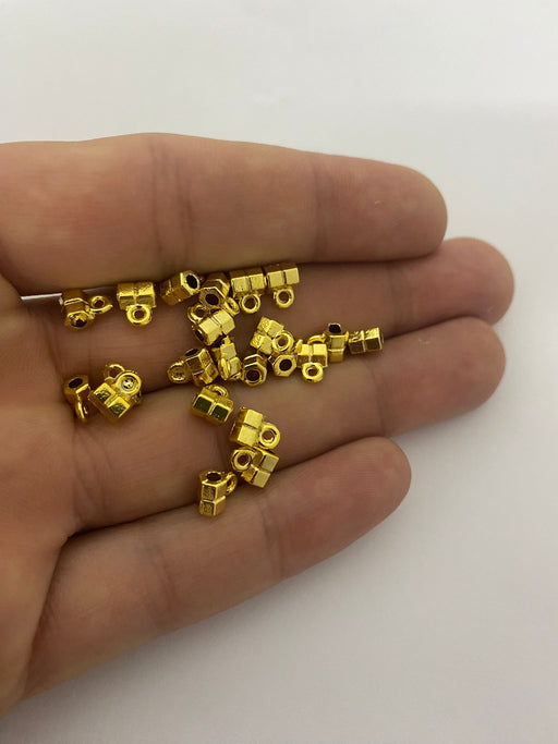 Materiale: ottone Dimensioni: 5x5mm Dimensione interna del foro: 1 mm Colore: placcato oro lucido 24k Quantità: Facoltativa