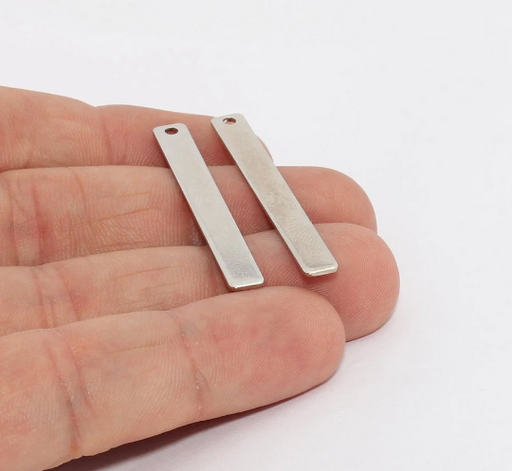 Materiale: ottone Dimensioni: 5x40mm Spessore: 0,8 mm - calibro 20 Colore: Argento placcato - Rodio placcato Quantità: Facoltativa