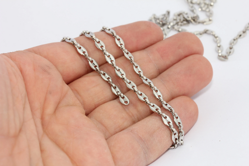 Catene da marinaio placcate in rodio 5x6 mm, catene saldate, catene per braccialetti in argento, catene in grandi quantità, componenti placcati in argento, BXB127-1