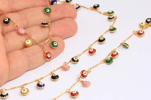 Catene anti-malocchio in oro lucido 24k da 6,5 mm, con perline a goccia, BXB262-2