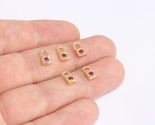 Ciondoli con lucchetto in oro lucido 24k da 5x9 mm, micro pavé, mini lucchetto SLM536