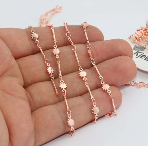 Catena a forma di sole in oro rosa 5x9 mm, catena saldata in oro, catena a barra, catena per cavigliera, catena in grandi quantità, catene placcate in oro rosa, BXB236