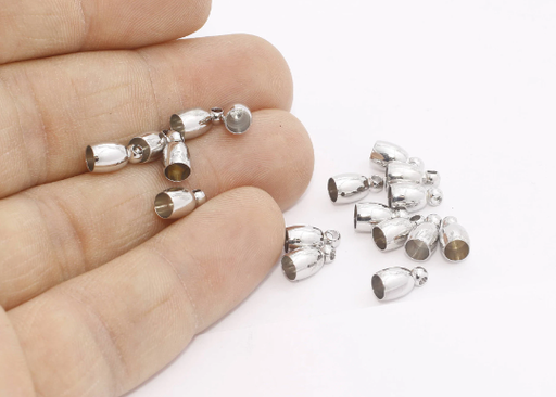 Terminali placcati in rodio 5x9 mm, interno 4 mm, per perline, nappa FNL61