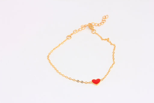 Bracciale a forma di cuore in oro lucido 24k da 6,5'' + 2'', bracciale a forma di cuore in smalto rosso,