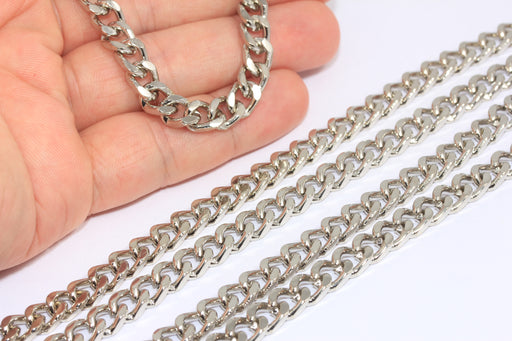 Catena sfaccettata placcata in rodio 6,9x9,9m, catena a maglie robuste, BXB147-5