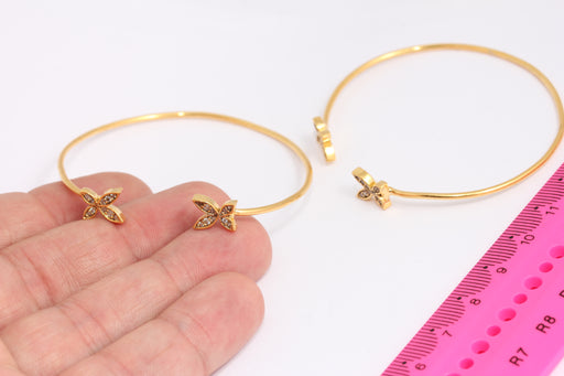 Bracciale rigido in oro lucido 24k da 60 mm, con farfalla in pavé Miro, SLM304
