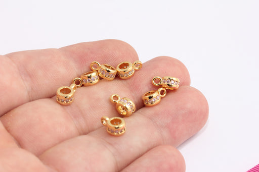 Perline in zirconia cubica oro lucido 24k da 6,5x10 mm, perline rotonde micro pavé in zirconia cubica, ciondoli a goccia, componenti placcati in oro, CHK337-2