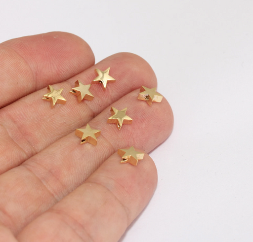 Perline a forma di stella in oro lucido 24k da 6,5 mm, ciondoli a forma di stella in oro, stella, MLS64