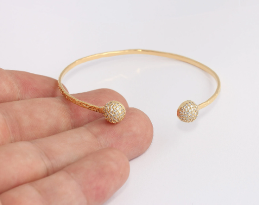 Bracciale rigido in oro lucido 24k da 60 mm, bracciale con zirconi cubici, bracciale rigido, CHK206-1