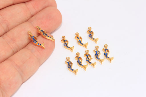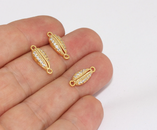 Ciondoli a forma di conchiglia in oro lucido 24k, 6x16 mm, micro pavé, oro MLS89