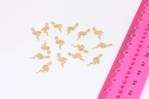 Fenicottero in oro lucido 24k 6x16 mm, ciondoli a forma di fenicottero, ciondolo per collana, ciondoli a forma di fenicottero per braccialetto, fenicottero, accessori placcati in oro, MTE226