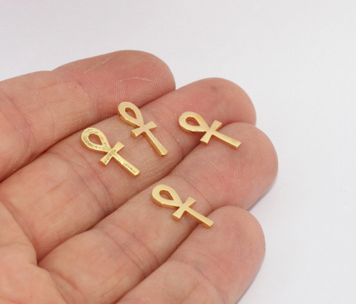 Ciondoli Ankh placcati in oro lucido 24k da 6x15 mm, Ankh, Vita, BRT860