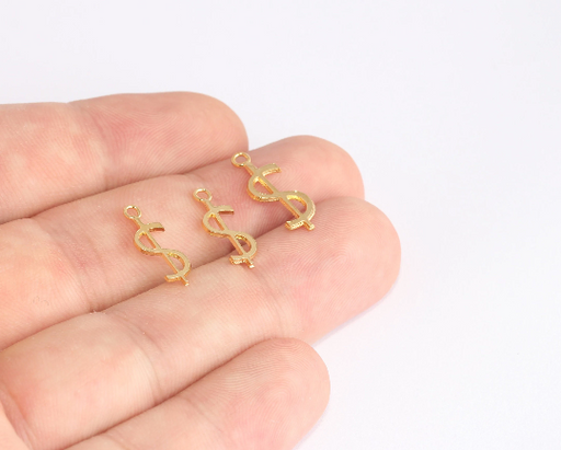 Ciondoli a forma di dollaro in oro lucido 24k da 6x17 mm, perline con simbolo del dollaro, SLM715
