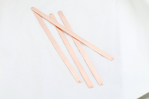 Materiale: ottone Dimensioni: 6x16mm Spessore: 0,8 mm - calibro 20 Colore: placcato oro rosa Quantità: Facoltativa
