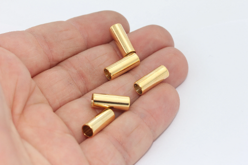 Perline tubolari in oro lucido 24k 6x15 mm, ciondoli tubolari, tubicini minuscoli, MTE419