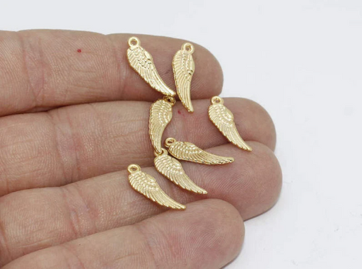 Ali d'angelo in oro lucido 24k 6x15 mm, ciondoli a forma di angelo, oro BRT677