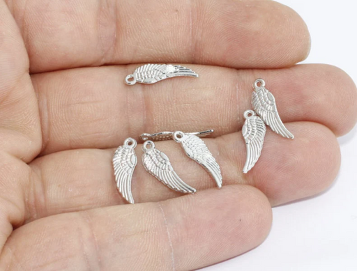 Ali d'angelo placcate in rodio 6x15 mm, ciondoli a forma di angelo, ciondolo, CR176