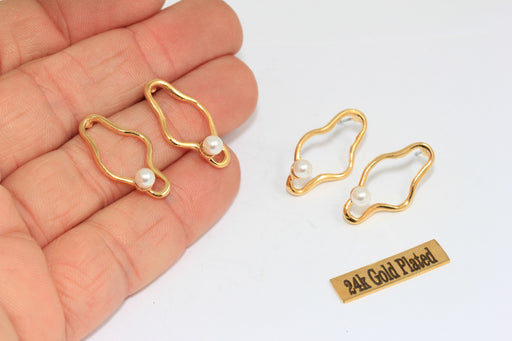 Ciondolo per orecchio in oro lucido 24k da 12x44 mm, accessori per orecchini senza foro con zirconi cubici.