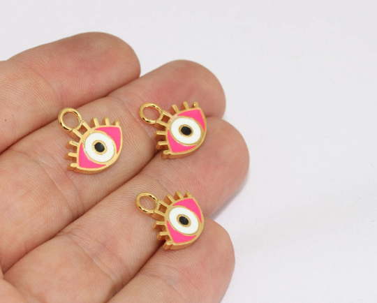 Ciondoli con occhio malvagio in oro lucido 24k da 14x15 mm, smalto, BRT647