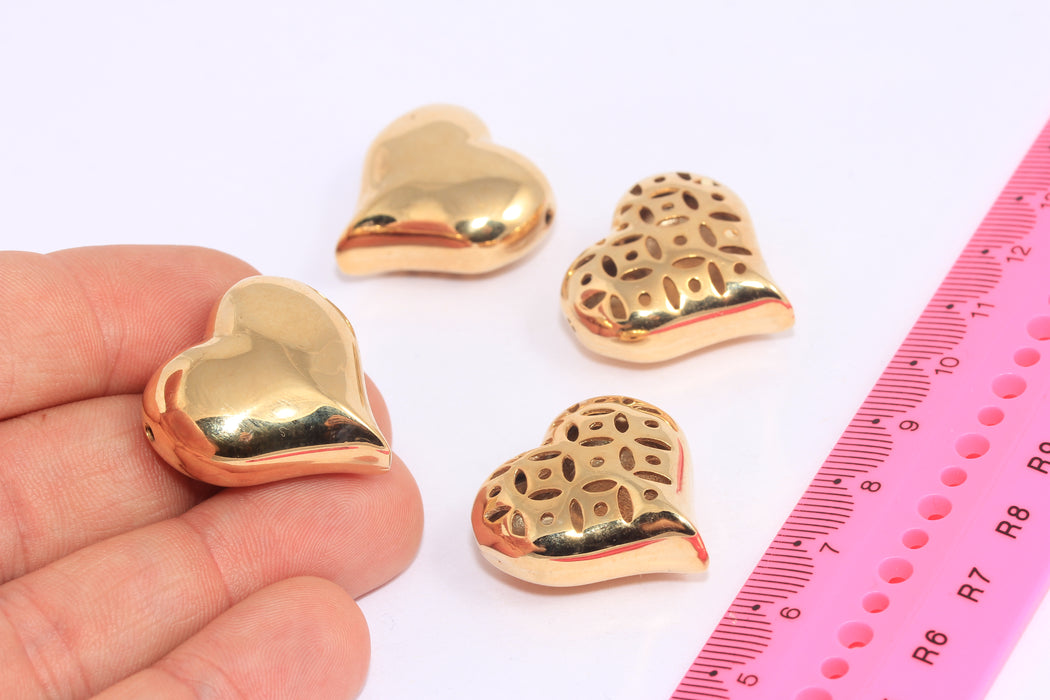 Ciondoli a forma di cuore in filigrana, 26x27 mm, oro lucido 24k, HRN64
