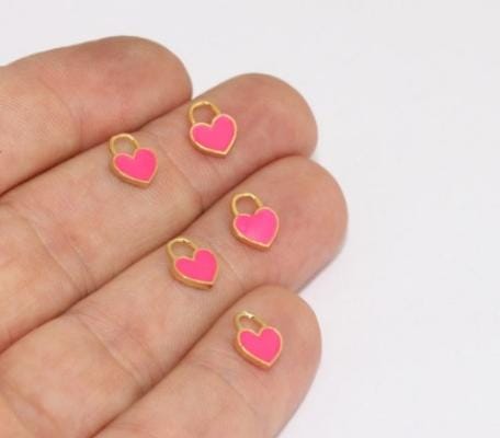 Ciondolo a forma di cuore rosa in oro lucido 24k da 7x9 mm, BRT220