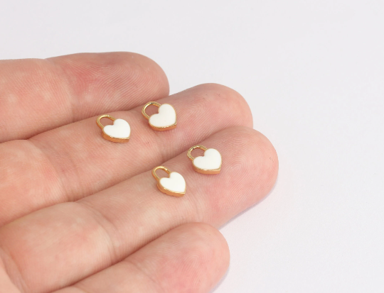 Cuore in oro lucido 24k 7x9 mm, cuore in smalto bianco, componenti placcati in oro, XP273