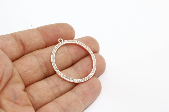 Ciondolo a cerchio in oro rosa pavé da 33x36 mm, zirconi cubici rotondi, zirconi cubici ZRCN88