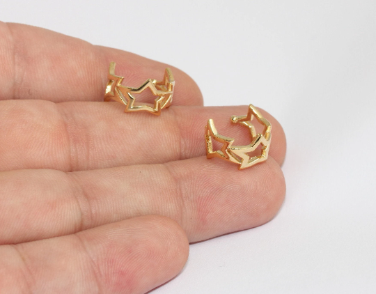 Orecchino a cerchio a forma di stella in oro lucido 24k da 15 mm, delicato, MLS567