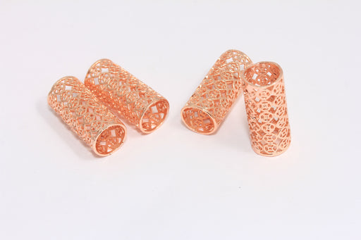 Tubi placcati oro rosa 10x25 mm, copriperlina, ciondoli a tubo in filigrana, perline lunghe, tubi con cordino in pelle, ROSE667