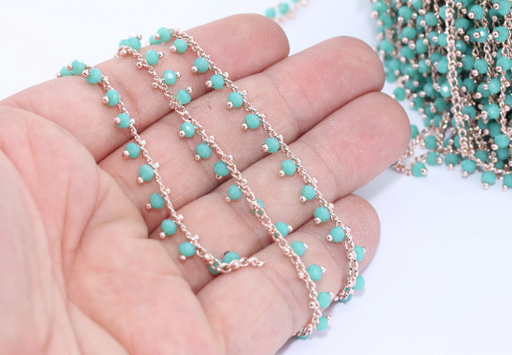 Materiale: ottone Larghezza della catena: 2 mm Dimensioni del cristallo: 3,5 mm Colore: placcato oro rosa Colore del cristallo: turchese