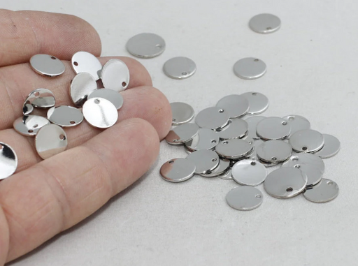 Ciondoli rotondi placcati in argento da 10 mm, disco rotondo, medaglione BRT521