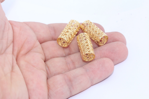 Perline tubolari in filigrana d'oro lucido 24k, 10x23 mm, tubo, CHK171-2