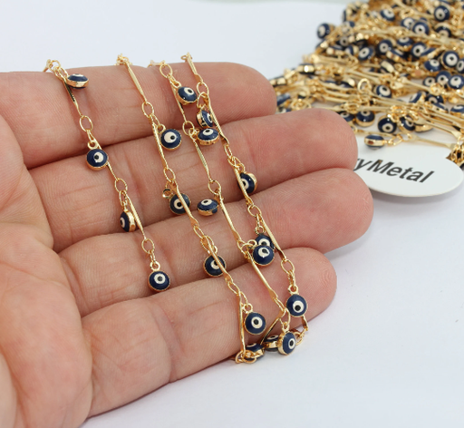 Catena con occhio diabolico in oro lucido 24k da 4x6 mm, catene con perline, catene a barra BXB209