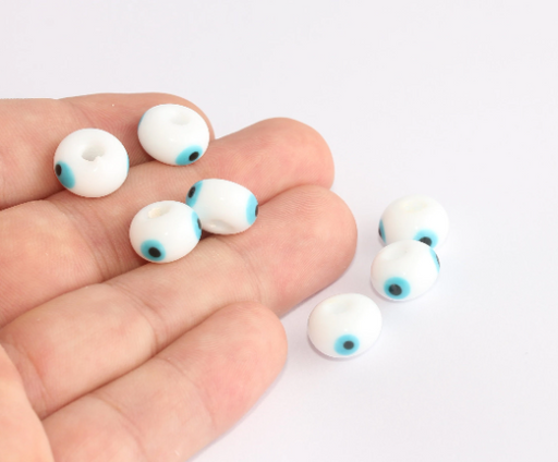 Perline bianche anti-malocchio da 13 mm, rondelle rotonde anti-malocchio, perline, SLM949
