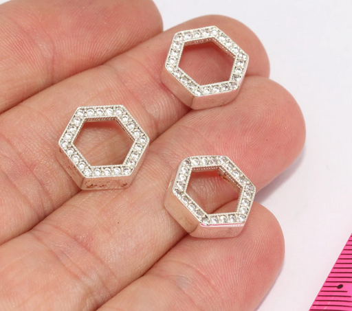 Esagono placcato rodio da 12 mm, esagono micro pavé, ZRCN86