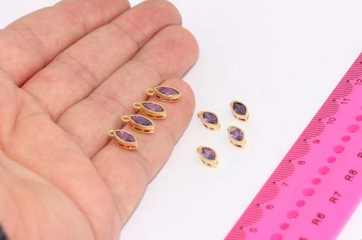 Materiale: ottone Dimensioni: 9 mm Colore: placcato oro lucido 24k Colore della pietra: viola Quantità: Facoltativa