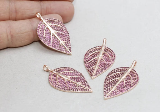 Ciondolo a forma di foglia, in oro rosa 10x20 mm, micro pavé, zirconi cubici, ZRCN452