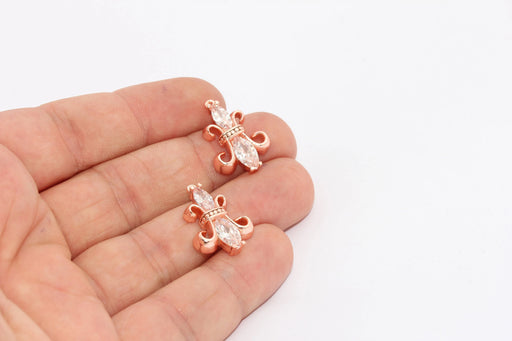 Charms a forma di fiore in oro rosa 9x12 mm, micro pavé, ZRCN127