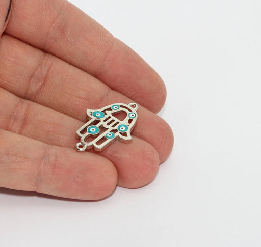 Hamsa placcato argento 20x29 mm, Hamsa con occhio maligno, connettore ZRCN355