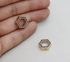 12 mm, oro lucido 22k, esagono, esagono micro pavé, ZRCN142