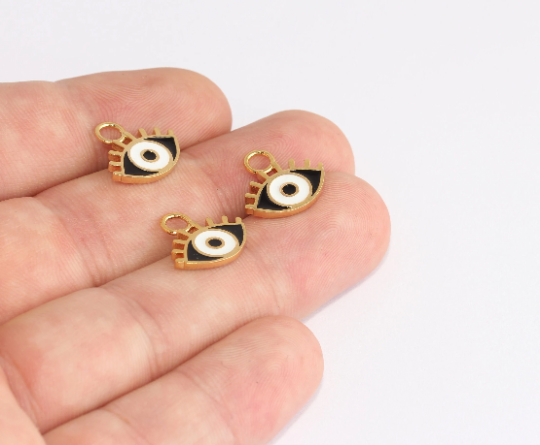 Ciondoli con occhio malvagio in oro lucido 24k da 14x15 mm, smalto malvagio, oro XP121